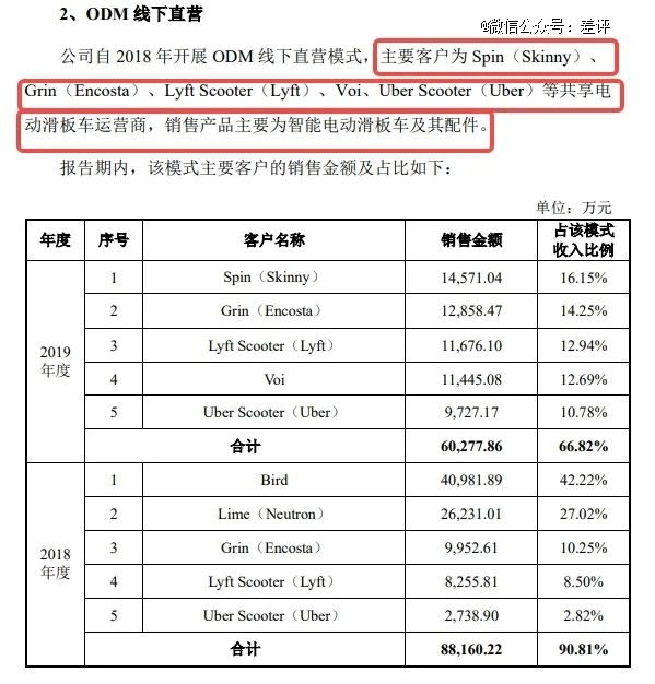 他的主要客户,从 2018 年开始就几乎全是共享电动滑板运营商,除了 Lyft 之外,还有 Spin 、 Grin 、 Voi 、 Uber Scooter 、 Bird 等等等等。