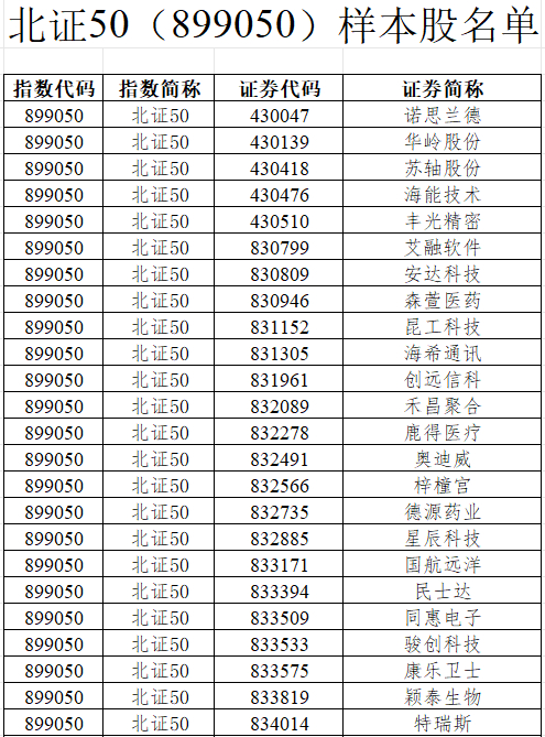 北证50、沪深300等指数样本亦定期调整