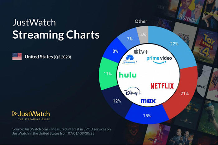 不过,这仍与领跑者存在明显差距:亚马逊旗下的Prime Video以22%排名第一,Netflix则以21%紧随其后,改名后的Max(15%)、Disney+(12%)和Hulu(11%)都超过两位数,而Paramount+(8%)也位居Apple TV+之前。