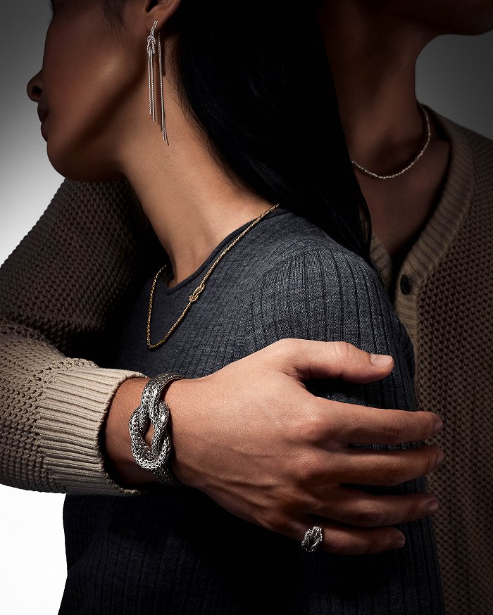 Love Knot寓意真挚情谊与爱意连结,在这个假日,John Hardy赋予Love Knot系列更多元的灵感,不仅将链结标志巧妙延伸至更多单品,涵盖织物手链和流苏耳环,还将链结标志扩展至多种尺寸。