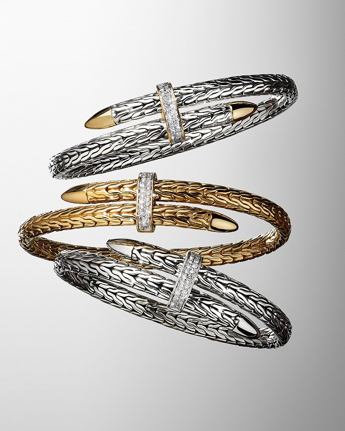 搭配可调节的环扣设计,打造舒适自如的佩戴体验。璀璨的钻石光芒闪耀于环扣之中,映衬John Hardy标志性的编织设计,完美展现匠心工艺与奢华质感的交融,颂扬每位佩戴者为内心而战的勇气与热枕。