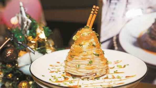来自上海中医药大学药膳专业的研究生徐婕和田瑞菁将四季养生披萨带到了决赛现场。“我们在披萨中加入了药食同源的食材,比如紫苏叶、陈皮、枸杞、银耳、肉桂等。”徐婕说,不同季节的披萨还加入了当季“风味”,比如春天加入的是芦笋,夏天是百合,秋天是桂花,冬天是肉桂。