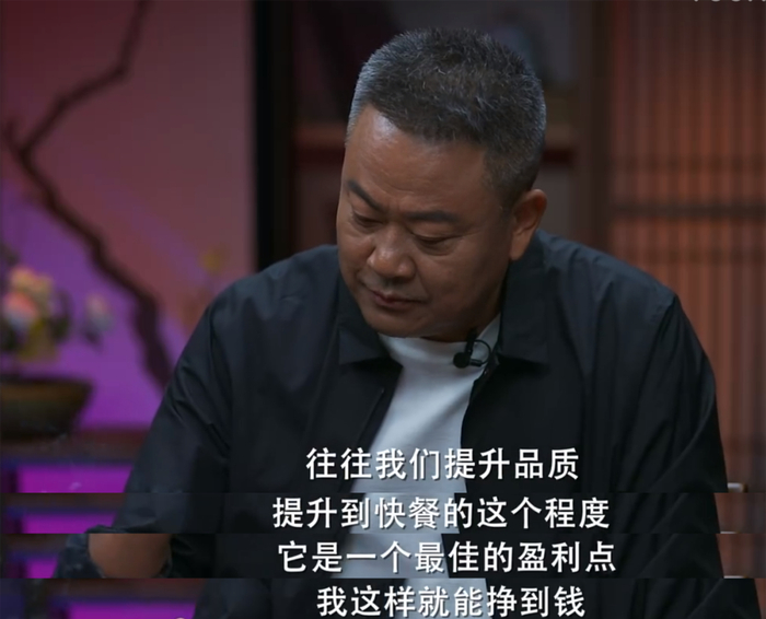 “从赚钱的层面来说,开餐厅做品质并非越高越好,它有个最佳赢利点。假如店家花50块可以做到60分,那么再花50块可能只能提升到65分。”