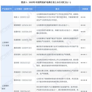 具体包括,上游TCO玻璃上市公司:南玻A(000012.SZ)、安彩高科(600207.SH)、亚玛顿(002623.SZ)、秀强股份(300160.SZ)等;靶材上市公司:隆华科技(300263.SZ)、阿石创(300706.SZ);POE胶膜上市公司:福斯特(603806.SH)、海优新材(688680.SH)、明冠新材(688560.SH)等;丁基胶上市公司:康达新材(002669.SZ);镀膜设备上市公司:捷佳伟创(300724.SZ)、京山轻机(000821.SZ)、微导纳米(688147.SH);涂布设备上市公司:曼恩斯特(301325.SZ);激光设备上市公司:大族激光(002008.SZ)、迈为股份(300751.SZ)、帝尔激光(300776.SZ)等。