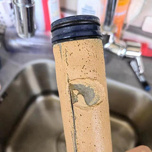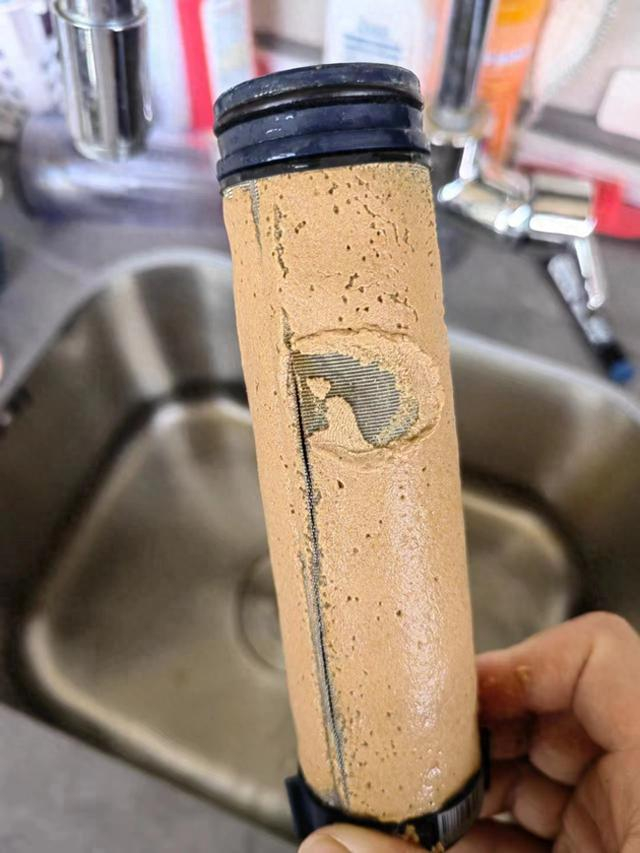 小区居民的过滤器滤芯中过滤出厚厚的泥沙
