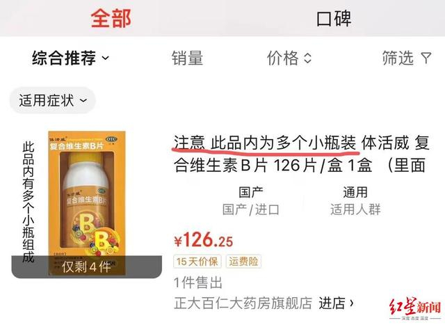 网络上,吐槽“体活威”牌维生素B族“套娃包装”的并不在少数,红星新闻发现,自2022年以来,不少网友在社交平台质疑该药品包装不合理。在京东官网上,该药品在醒目位置提醒消费者注意“此品内为多个小瓶装”。
