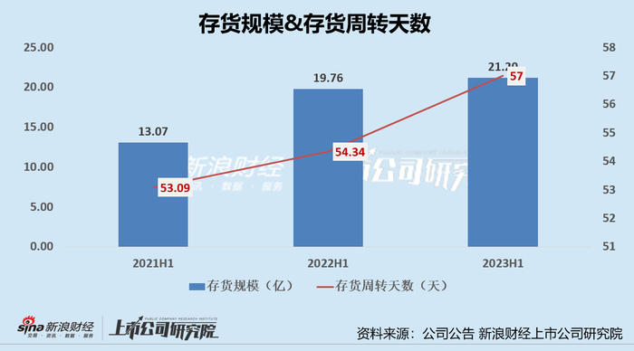 从库存状况来看,2021H1-2023H1,公司的存货规模持续攀升,存货规模分别为13.07亿元、19.76亿元、21.20亿元,2022H1、2023H1分别同比增长51.19%、7.29%。除此之外,公司年中存货周转效率持续下降,2021H1-2023H1公司的存货周转天数分别为53.09天、54.34天、57天、对应存货周转效率下降。2023年Q3,公司库销比近5个月,同比环比均有增加,主因终端销售偏弱以及备货增加。