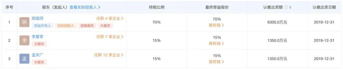 天眼查显示,阴祖同、李爱军、孟庆广三人,分别持有泰山名饮70%、15%和15%的股份。