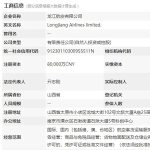 这一变化源自一则工商信息变更:龙江航空的注册地从南京变更为山西太原。