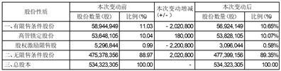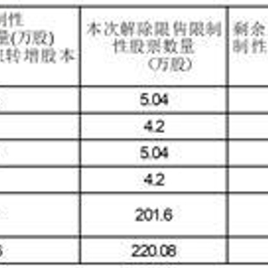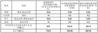 2、本次解除限售股份数量为:220.08万股,占公司目前总股本的0.4119%。