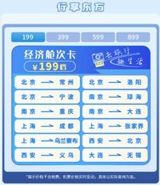 经济舱次卡航线上新,199元起即可兑换“上海-成都”“上海-济南”等航线机票;