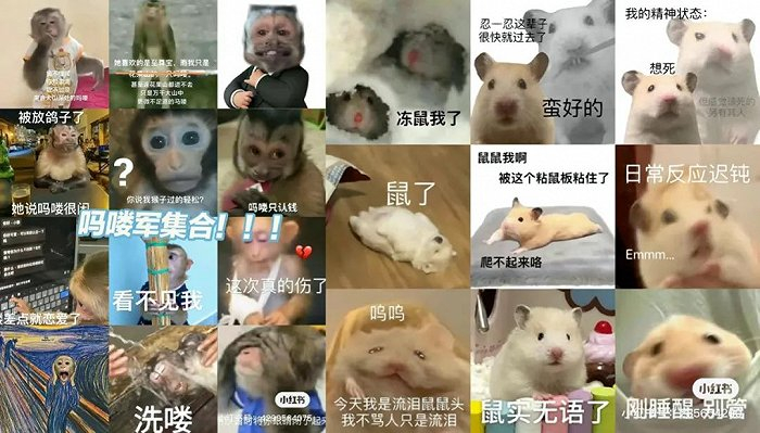此外,还有“斯密吗喽”“鼠鼠我啊”这类网梗,带火了猴子、老鼠等不算大众的动物形象,它们因为能代表年轻人的精神状态而被广泛传播。