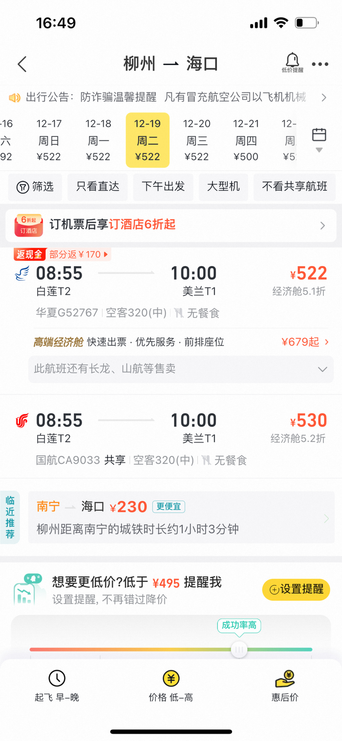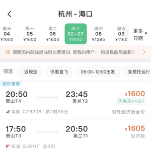 ③此外,如果想淘性价比高的长假机票,可以关注一下长假中后段,也就是正月初三、初四以后的机票,有比较大的概率能“捡漏”。