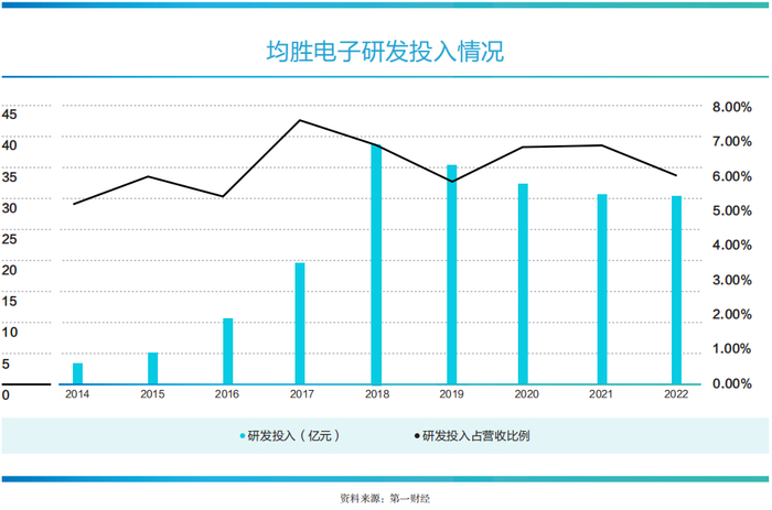 近年来,均胜电子通过设立的智能汽车技术研究院、新能源研究院、浙江省汽车电子智能化重点实验室等,积极布局电动化、智能化领域前沿技术。根据公司财报,均胜电子过去五年年均研发投入超过30亿元,累计研发投入接近170亿元,遥遥领先于汽车零部件同业。