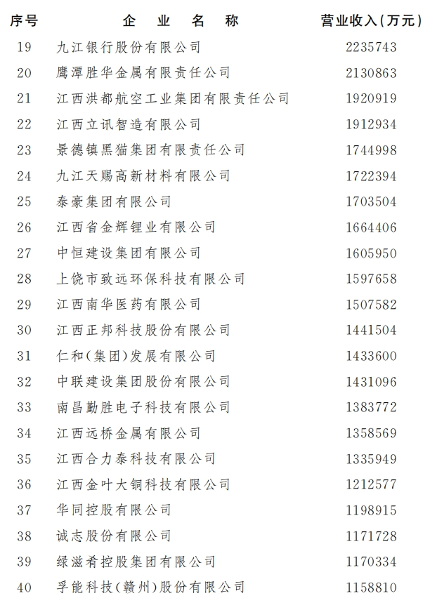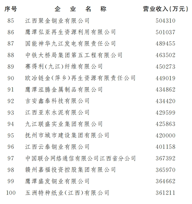 江西企业100强榜单出炉!全名单→