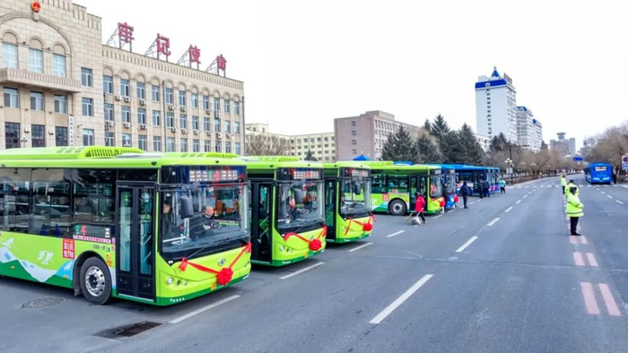 一汽解放交付的300辆新能源纯电公交车,搭载成熟可靠的电驱动及储能系统,匹配多种智能化及辅助安全设施,具备高端、智能、安全、舒适的产品特点,将为吉林市公共交通注入先进力量,助力吉林市打造东北城市地面公交典范。