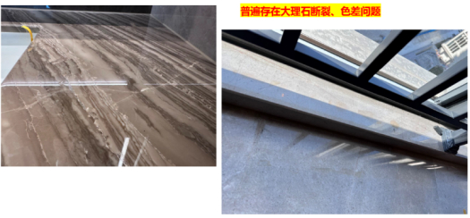 业主提供的PPT还显示,现场不少玻璃都出现爆裂现象,虽然怼君相信,这些在最终交付的时候会妥善更换处理,但在预看房阶段,如果出现安全事故,开发商依然难辞其咎,而且这样的界面,呈现给业主的信心是严重不足的。