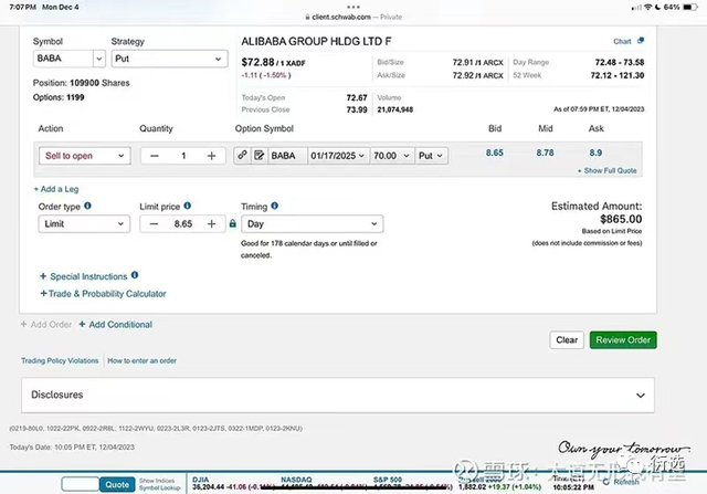 从这张图来看,目前阿里巴巴的股价是72.88美元,段永平卖出的put行权价是70美元,略低于当前股价,且截止时间是2025年1月,还很远。所以应该是很好卖出的。