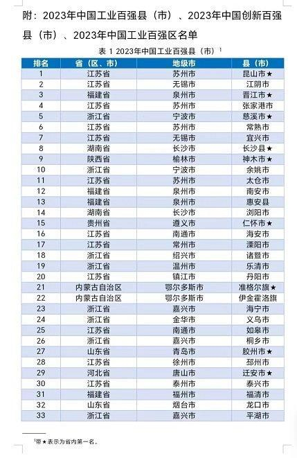 《报告》指出,2023年工业百强县(市)贡献了全国9.9%的GDP、14.5%的工业增加值,98个县(市)全部工业增加值增速实现增长,其中73个高于全国平均水平。