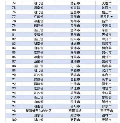 从山东看,78个县市10个入围工业百强县,分别为胶州(27)、龙口(32)、广饶(48)、寿光(50)、邹城(53)、邹平(69)、桓台(84)、荣成(87)、滕州(96)、诸城(99)。其中,寿光向前进位26位,广饶向前进位16 位,邹平向前进位15位,胶州向前进位6位;桓台以84名新晋百强榜,招远、平度跌落百强榜。