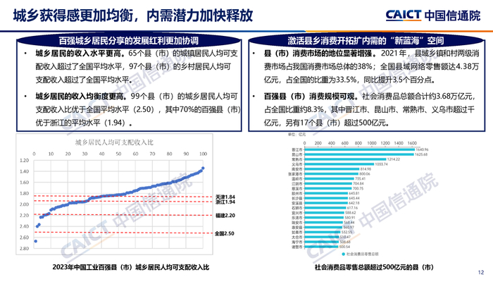 从《中国县域工业经济发展报告(2023年)》可以看到,提振县域消费是内需扩容的重要空间,需要更多政策刺激县域内需潜力加快释放。