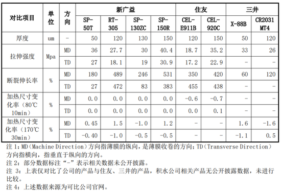 1、抗溢胶特种膜与主要竞品、实现进口替代产品的参数对比情况