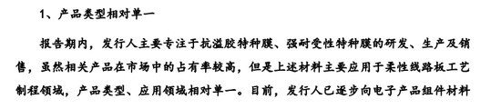 “报告期内,发行人主要业务为抗溢胶特种膜、强耐受性特种膜的研发、生产及销售。目前发行人在开展电子产品组件材料、改性材料、光学胶膜、新能源锂电材料、光伏胶膜等新兴产品的研发生产工作,可能出现技术研发失败、研发成果未达市场预期或者公司未能最终进入新客户的供应商行列等新业务开拓不及预期的风险。”