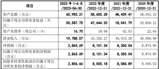 报告期各期,发行人主营业务收入分别为40,966.89万元、49,597.01万元、45,513.00万元和19,770.87万元,主要来源于抗溢胶特种膜及强耐受性特种膜产品的销售。报告期内,公司的主要财务数据如下: