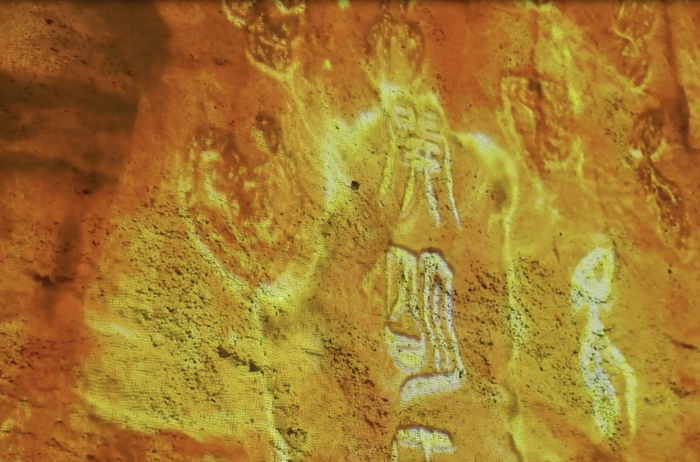 还有,首次将激光点位装置应用达到厘米级的AI锁定进行交互;首次在光影艺术展中运用了高清分辨率风扇屏装置;高4.2米、宽3.5米的黄金面具形象,采用mapping技术在实体墙面上打造呈现,并使用8台高流明高清投影仪进行投影。