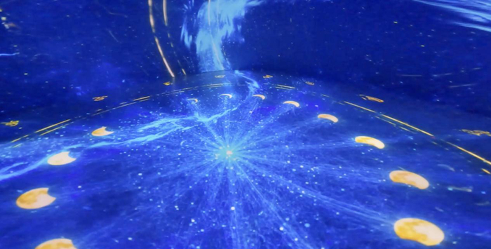 其中难度最高、耗时最长的是360度展厅的表达方式。在300平方米的圆形空间实现了360度墙面及地面全覆盖,每个区域都采用独立服务器操控,利用软件融合技术进行画面的拼接,再使用40台高流明爱普生投影仪打造出无与伦比的裸眼3D沉浸效果。