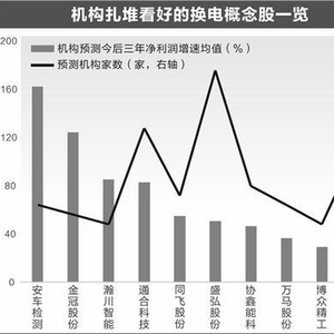 从未来增长潜力来看,根据5家以上机构一致预测,10只换电概念股今后三年净利润增速均有望超20%,其中安车检测、金冠股份三年净利润增速均值达到1倍以上。