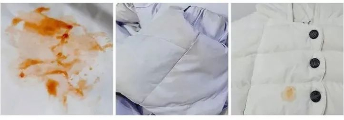 但是不管是多少钱的羽绒服,一旦沾上油渍发黄,分分钟变地摊货。