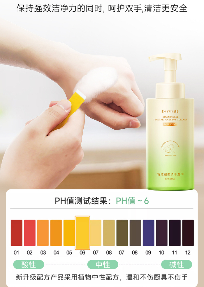 中性配方pH值6,足够温和,直接用手触摸都不会刺激肌肤。