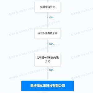 而在强硬的背后,懂车帝背后站着的是抖音集团。天眼查显示,懂车帝的主体公司为北京空间变换科技有限公司,该公司成立于2016年3月,法定代表人为李飞,注册资本为1000万元。股权机构方面,今日头条有限公司持有前者100%股权,穿透后的上一层股东为抖音有限公司。