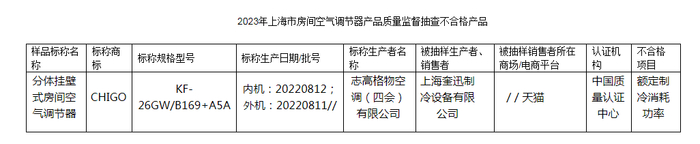 中国质量新闻网讯(闫冬)本网从上海市市场监督管理局近日发布的2023年上海市房间空气调节器产品质量监督抽查结果了解到,志高格物空调(四会)有限公司(标称生产者)生产的一款产品不合格。