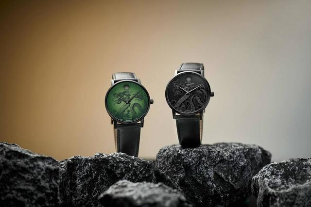 两款腕表均巧承经典,以40mm表径呈现,搭载瑞士自动机械机芯,提供优异的上弦效率和动储能力。两款腕表表盘缀点祥云底纹,象征福运与繁荣;精美龙纹衬映指针走转,流云灵动,祥龙舞跃,通达如意。“潜龙”取自墨砚之黑,以同色系的经典灰黑搭配呈现腾龙之态。“玉龙”成于碧绿玉色,以绿色渐变灵起飞扬之姿。腕表巧妙沿袭摩凡陀的“艺术制表”理念,将艺术大师笔下的腾龙画面生动呈现于表盘之上,传统美学与现代设计风格碰撞,游龙蜿蜒而上,彰显艺术锋芒。