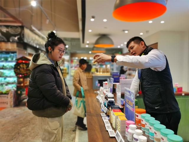 “导购很专业,能根据我的年龄和健康情况进行推荐,感觉心里有谱了。”刚刚向“全球购”导购咨询过的郭女士告诉记者,她一直想购买一款进口鱼油,担心网购鱼油不适合自己,便特意来线下了解。导购展示了不同品牌鱼油的胶囊大小,并详细介绍了“全球购”商品线上下单的操作方法,郭女士最终决定购买,订单显示商品次日即可送至家中。