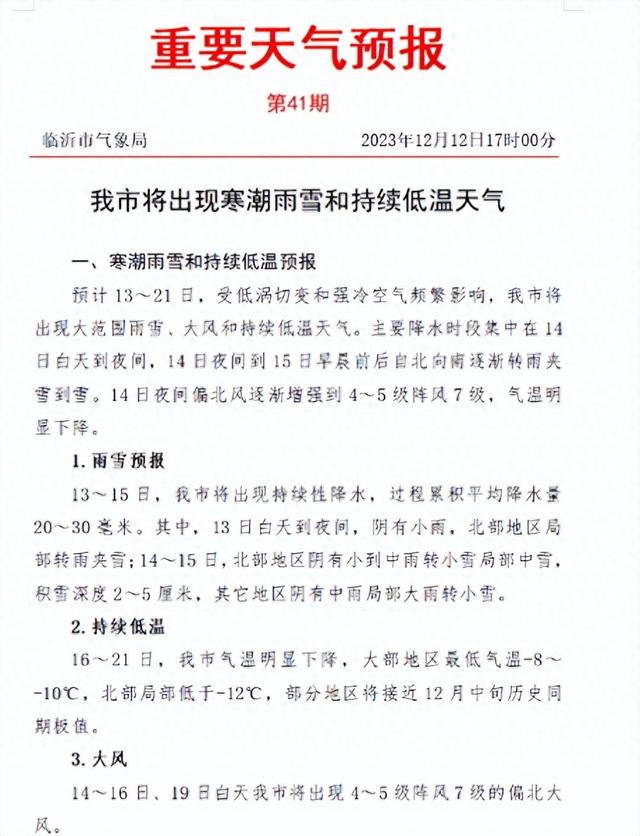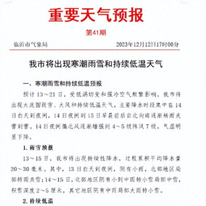 临沂发布重要天气预报!