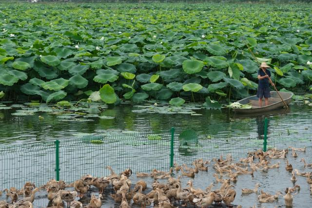 湖北荆州,小胡鸭“鸭藕共生”生态种养示范基地,这里出产的莲藕专供小胡鸭和良品铺子。