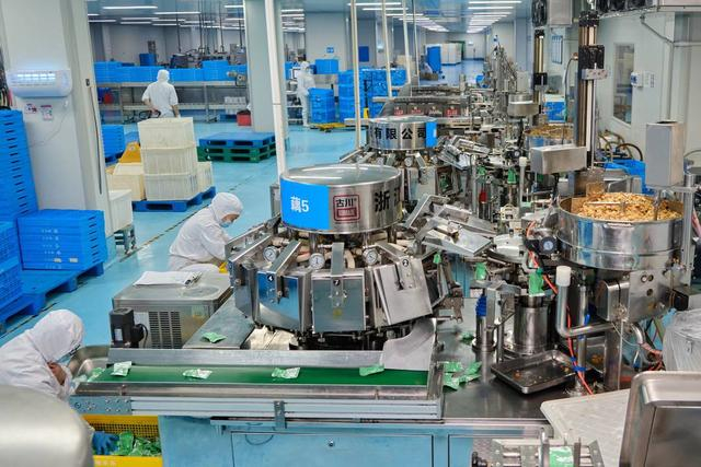 相比初加工,精加工车间的操作更为严格:一段段莲藕进入近10万级净化级别无菌生产车间,在自动化流水线清洗、卤制、灌装、杀菌,检验合格后才能上市销售。