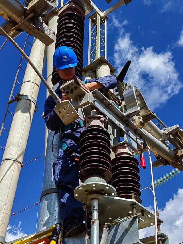 11月10日,南方电网云南曲靖供电局变电修试所工作人员在110千伏太平哨变电站进行融冰电缆搭接及升流试验工作。(南方电网 供图)