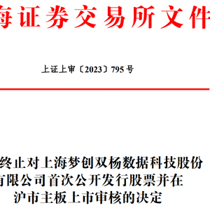 中国经济网北京12月13日讯 上交所网站昨日公布关于终止对上海梦创双杨数据科技股份有限公司(简称“梦创双杨”)首次公开发行股票并在沪市主板上市审核的决定。