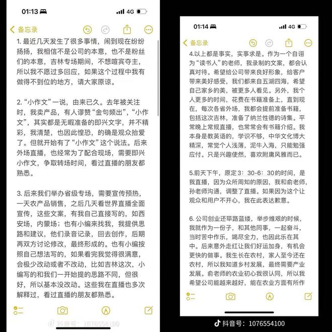 12月13日凌晨1点半,董宇辉千字回应“小作文”风波。