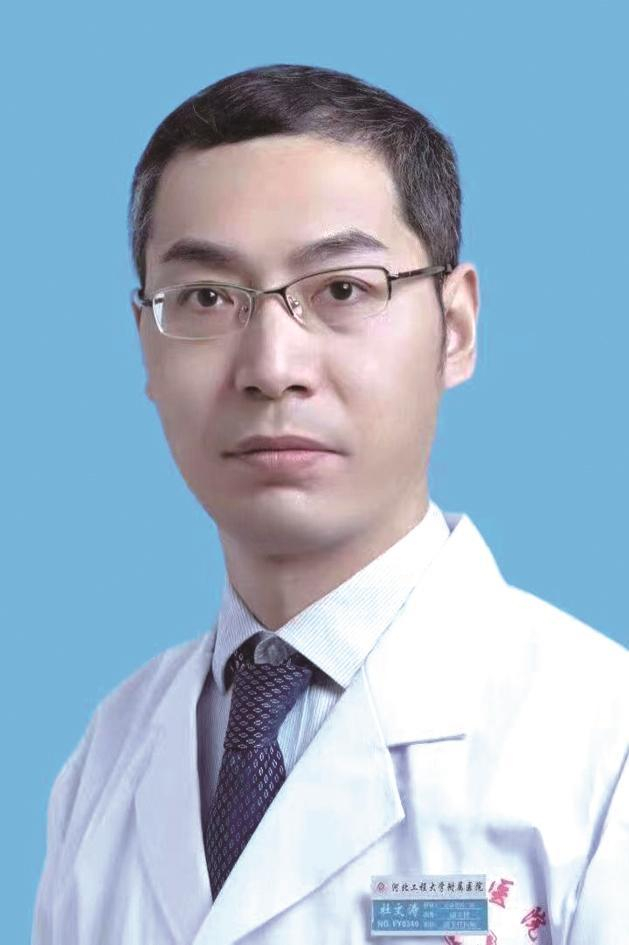 杜文涛 河北工程大学附属医院心内二科副主任医师、副教授,医学博士,硕士生导师。河北省邯郸市胸痛中心联盟常务委员、河北省急救医学会心血管病分会委员。成功诊断抢救急性心肌梗死患者数百例,熟练掌握冠心病心绞痛、心肌梗死、高血压、急慢性心衰、瓣膜病、心肌病、各种心律失常等的诊治,对心血管急危重症患者有丰富的经验和独到见解,熟练掌握心脏起搏器安置术、冠脉造影术、冠脉支架置入术和射频消融术等技术,为河北工程大学附属医院心血管介入骨干医师。发表国家级核心期刊20余篇,参编著作2部。