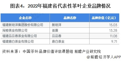 2022年福建省代表性茶叶企业品牌价值