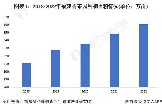 福建省是华东地区最主要的产茶省份,福建省的乌龙茶产量居全国之首,并且福建省也是黄茶及白茶的主产区。2022年全省茶叶种植面积361万亩,较2021年明显增长。