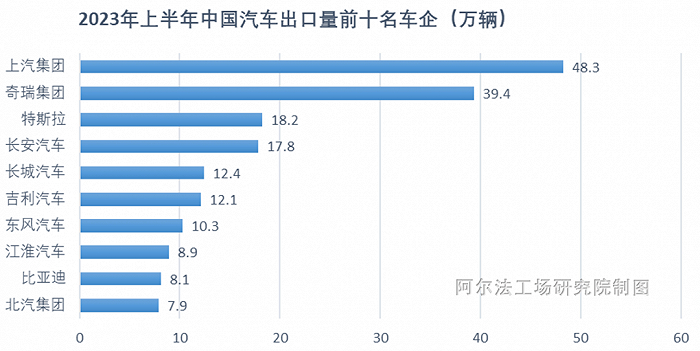 从最近三年趋势看,2021年,奇瑞全年总销量96.19万辆,出口26.92万辆,占比28%;2022年,总销量123.27万辆,出口5.13万辆,占比37%;今年上半年,出口占比再提升至53%,并以出口量39.4万辆的成绩,列中国车企出口销量亚军。