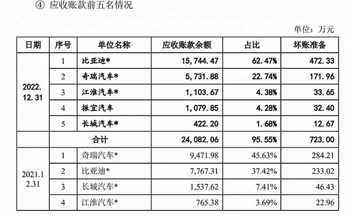 另一家是汇通控股,同期应收奇瑞汽车5732万元。