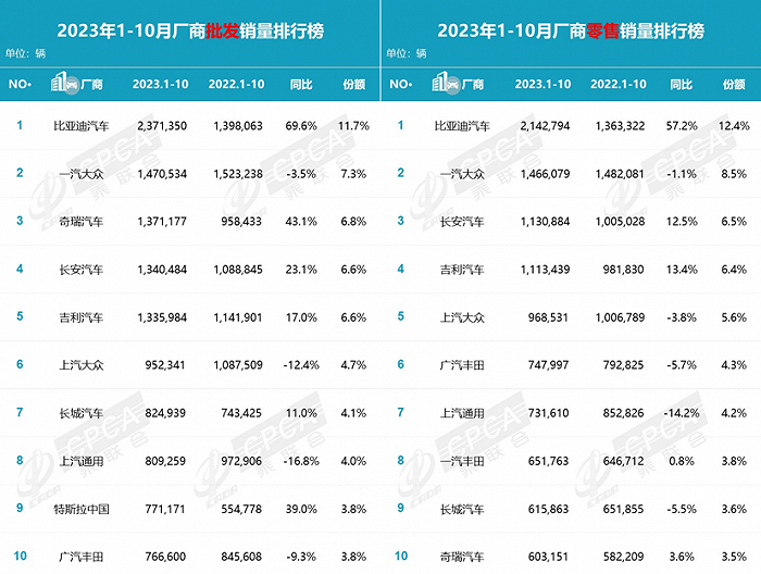 在国内终端市场,奇瑞的竞争力从乘联会数据可知一二。今年1-10月,奇瑞是全国批发量季军,但仅位列零售量第10名。这意味着,在4S店等渠道库存中的奇瑞汽车,还有相当一部分等待在终端市场消化。