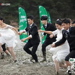 一档“恋综”的第一个场景,便是数组“新郎新娘”们身着礼服婚纱——如果这还可以理解为某种仪式感,那么紧接着,他们携手泥潭闯关的场景,就有了足够多的反差感和冲击力。
